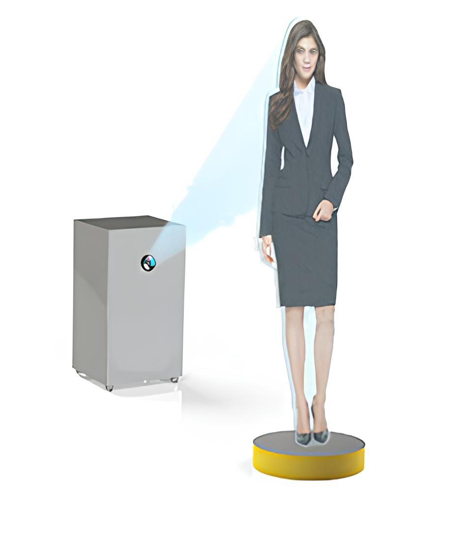 Виртуальный промоутер Promo представляет собой комплекс мультимедийного оборудования в виде человеческой фигуры и проектора. Такой промоутер проконсультирует покупателя в магазине, расскажет о продукте и благодаря своей уникальности привлечет много потенциальных клиентов.