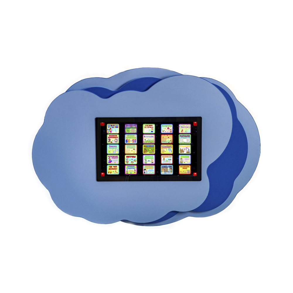 Настенная сенсорная панель «Тучка» выполнена в привлекательном дизайне для размещения в групповых комнатах детских садов, рекреациях, начальных школах и детских комнатах ресторанов и ТРЦ.