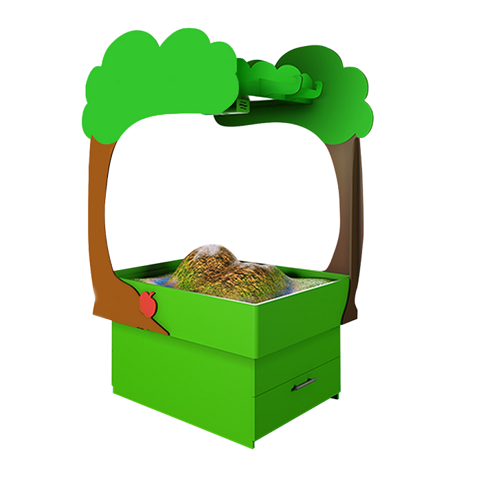 Это развивающий комплекс, который объединяет в себе возможности интерактивной песочницы и сенсорного стола. Технология дополненной реальности превращает обычный песок в земную поверхность с озёрами и горами, вулканами и долинами. Дополнительные панели позволяют проводить занятия в режиме сенсорного стола.