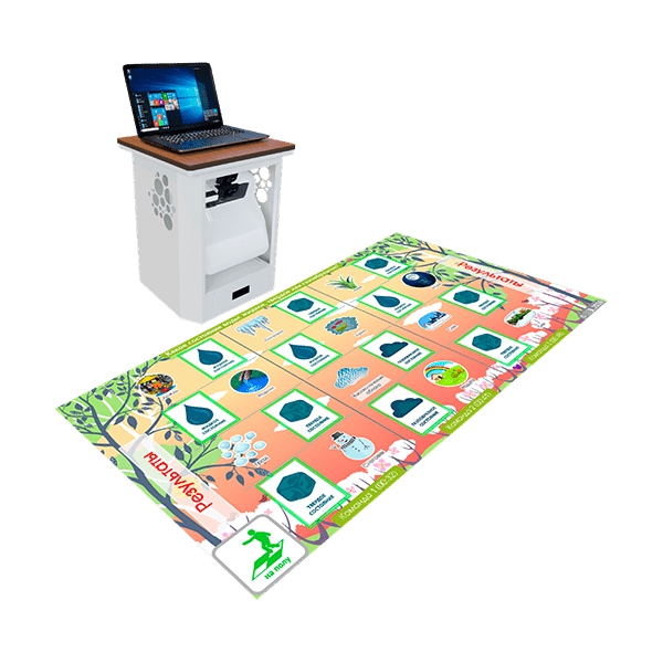 Интерактивная тумба "Умный пол" - это мультимедийное устройство в виде тумбы на колесах с ноутбуком и проектором. Оно позволяет проецировать изображение на пол. С его помощью вы сможете развернуть интерактивную площадку в любом помещении! А возможности нашего ПО позволят превратить игру в интересный, познавательный и запоминающийся урок.