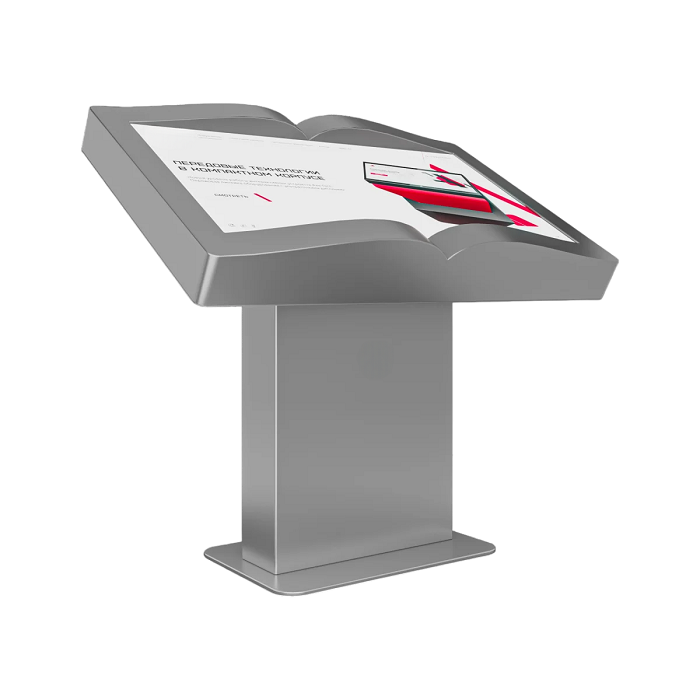 Интерактивный стол Book 43” – устройство, форм-фактор которого реализован в форме раскрытой книги. Механическая регулировка дисплея позволит настроить пользователям оптимальный угол для взаимодействия с программным обеспечением. Оборудование может быть дополнено информационным приложением или интерактивной книгой с эффектом пролистывания страниц.