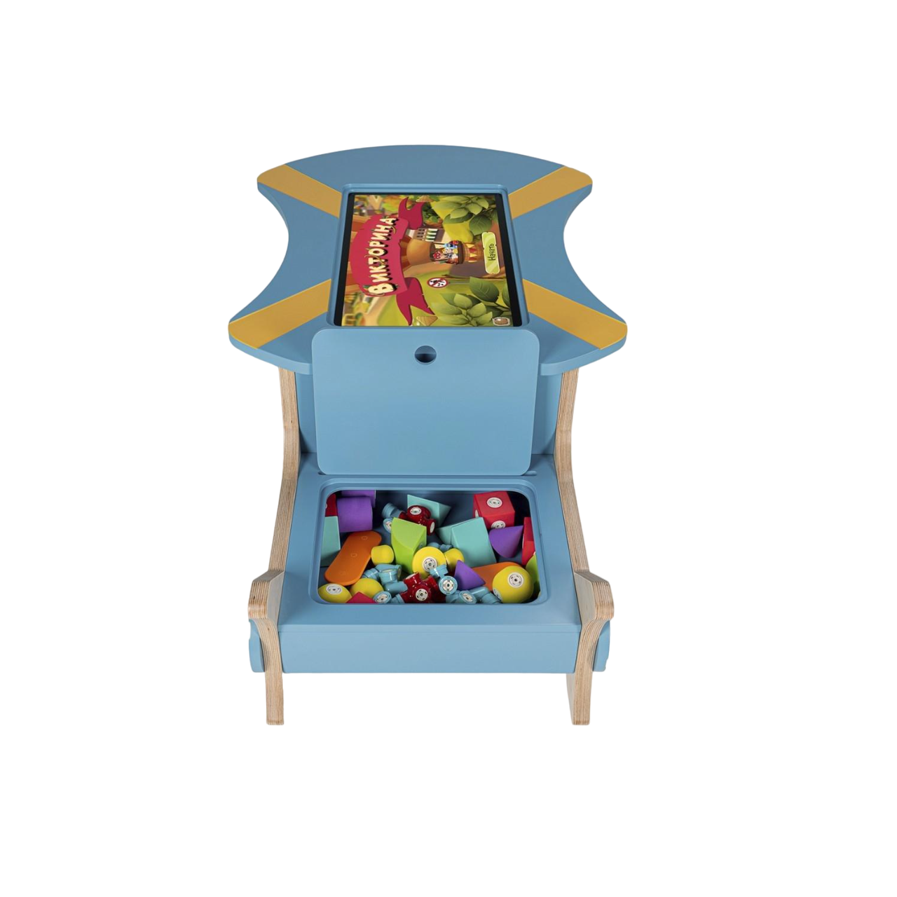 МИК «Вертолёт» представляет собой многофункциональное игровое пространство с тремя зонами. Это конструирование, занятия на интерактивной панели и сенсорный комплект Монтессори.