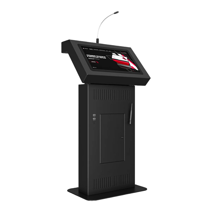 Сенсорное оборудование для проведения лекций, форумов, бизнес-конференций. Интерактивная трибуна Voice 19” позволяет работать с любыми приложениями, текстовыми, аудио- и видеофайлами. Создавать пометки на мониторе устройства для демонстрации на большом экране. Профессиональный микрофон, яркий экран, вешние разъемы неотъемлемые составляющие данной модели.