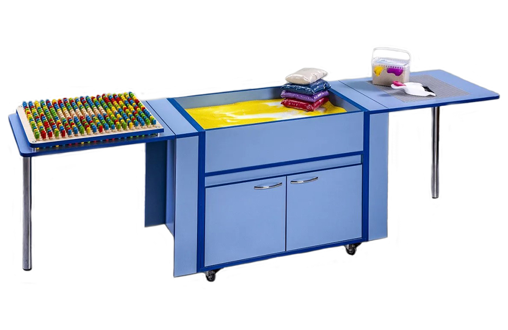 Световой песочный стол поможет ребенку погрузиться в волшебный мир песочной анимации и при этом более гармонично и интенсивно развивать все познавательные функции. В комплекте с модулем поставляются 2 вида песка: кварцевый (натуральный и цветной) – для рисования и кинетический – для лепки.