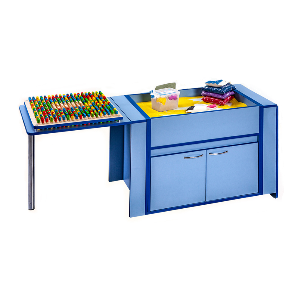 Встроенная по периметру рабочей поверхности светового стола подсветка RGB поможет маленьким волшебникам воплотить свои фантазии в реальность, а пульт управления подсветкой облегчит им эту задачу. В модуле также присутствует возможность дополнительно расширить рабочее место откидными платформами, на одной из которых располагается деревянная мозаика, на втором откидном рабочем месте находится встроенная платформа для работы детей с конструктором Лего.