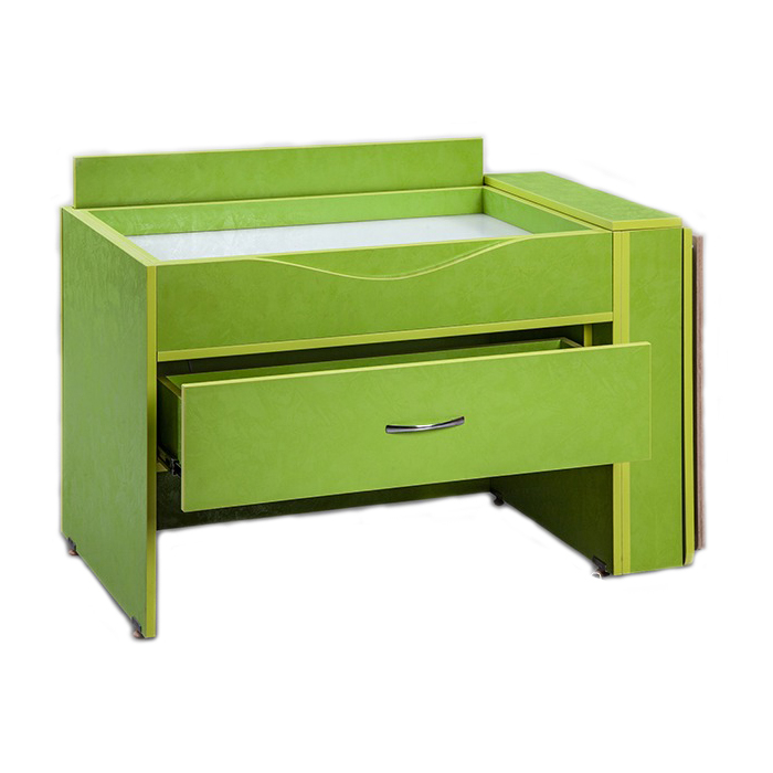 Комплекс разделён на несколько игровых зон, расположенных на одном просторном столе. С помощью откидной столешницы можно увеличить игровое пространство и разместить там несколько детей. Среди игровых наборов есть мозаика и песок для рисования. Рисование песком полезно для психического здоровья детей. Этот метод часто применяют в психотерапии.