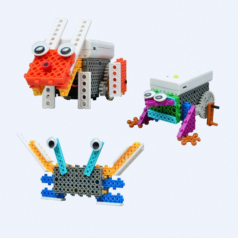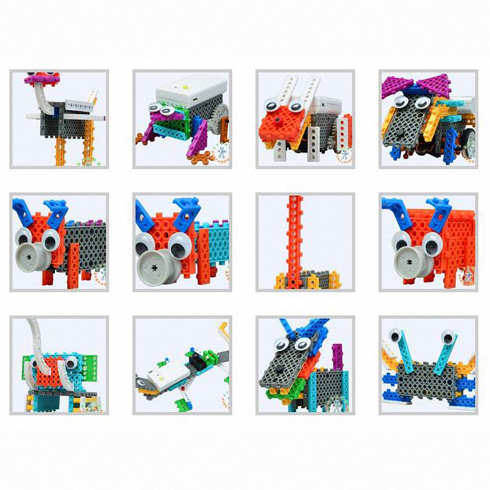 Данный конструктор предназначен для детей в возрасте 4-6 лет. После сборки модели двигаются прямолинейно благодаря двигателю на 4-х батарейках AAA. Производителем в приложенной брошюре даны пошаговые схемы сборки четырёх моделей с двигателем (последовательно): можно собрать "Робота-Крокодила", "Робота-Лягушку", "Робота-Собаку", "Робота-"Кролика".