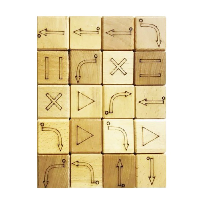 Каждый отдельный кубик показывает направление движения. Ребенок соединяет несколько частей, составляя подробный алгоритм действий, что и лежит в основе программирования. Игра предназначена для развития детей с раннего возраста, так как не требует умения читать и писать.