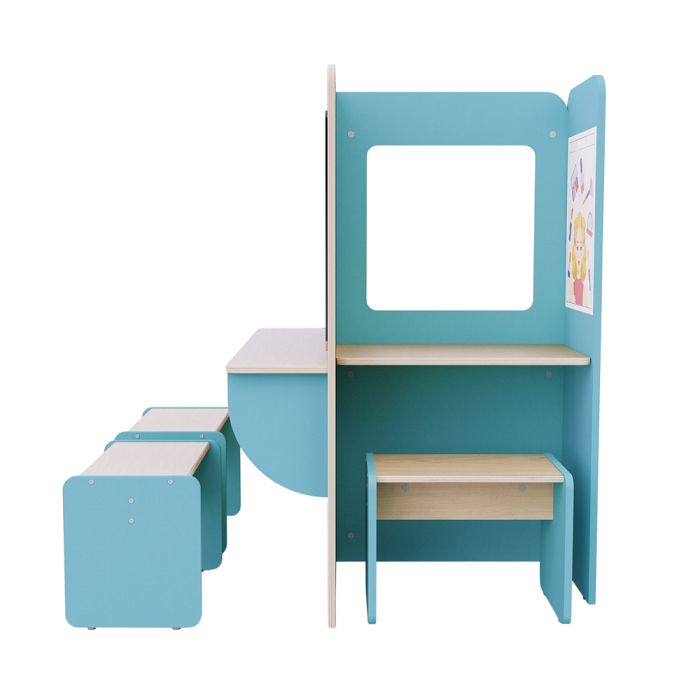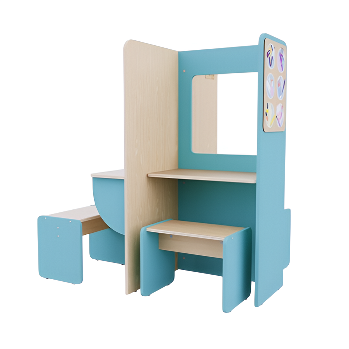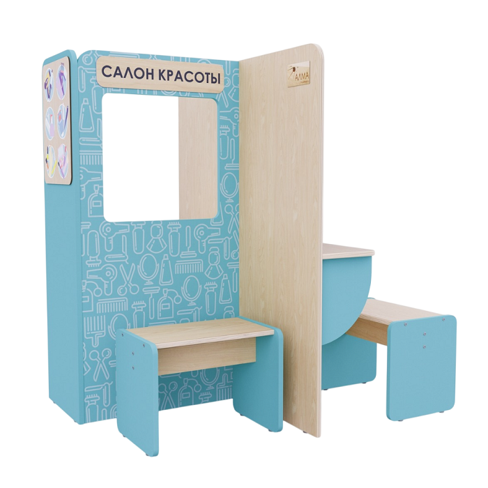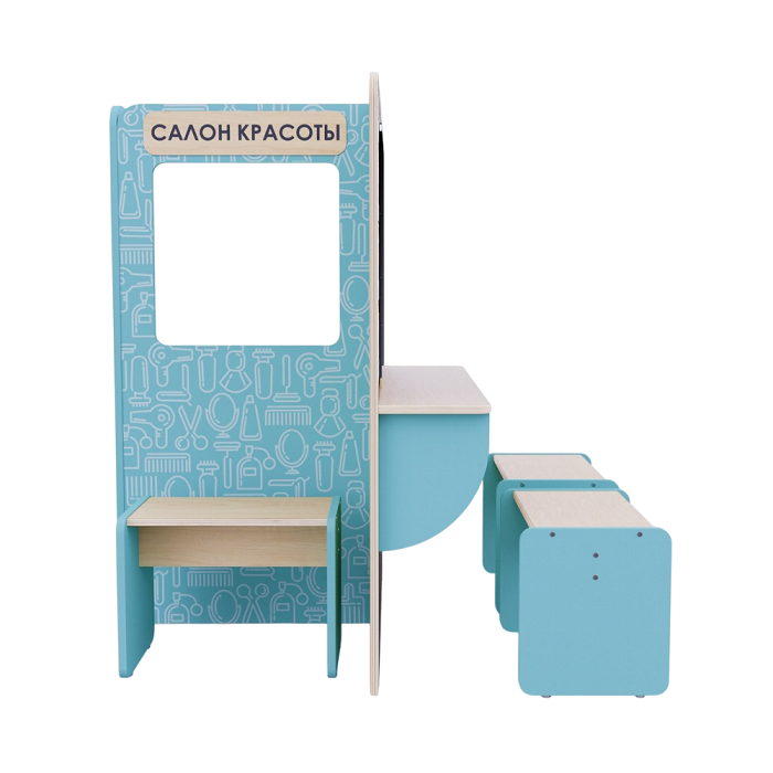 Пространство для сюжетно-ролевых игр в детских садах и дошкольных учреждениях, чтобы дети могли в приближенном к реальности пространстве попробовать себя в роли стилистов, визажистов, парикмахеров и клиентов салона красоты.