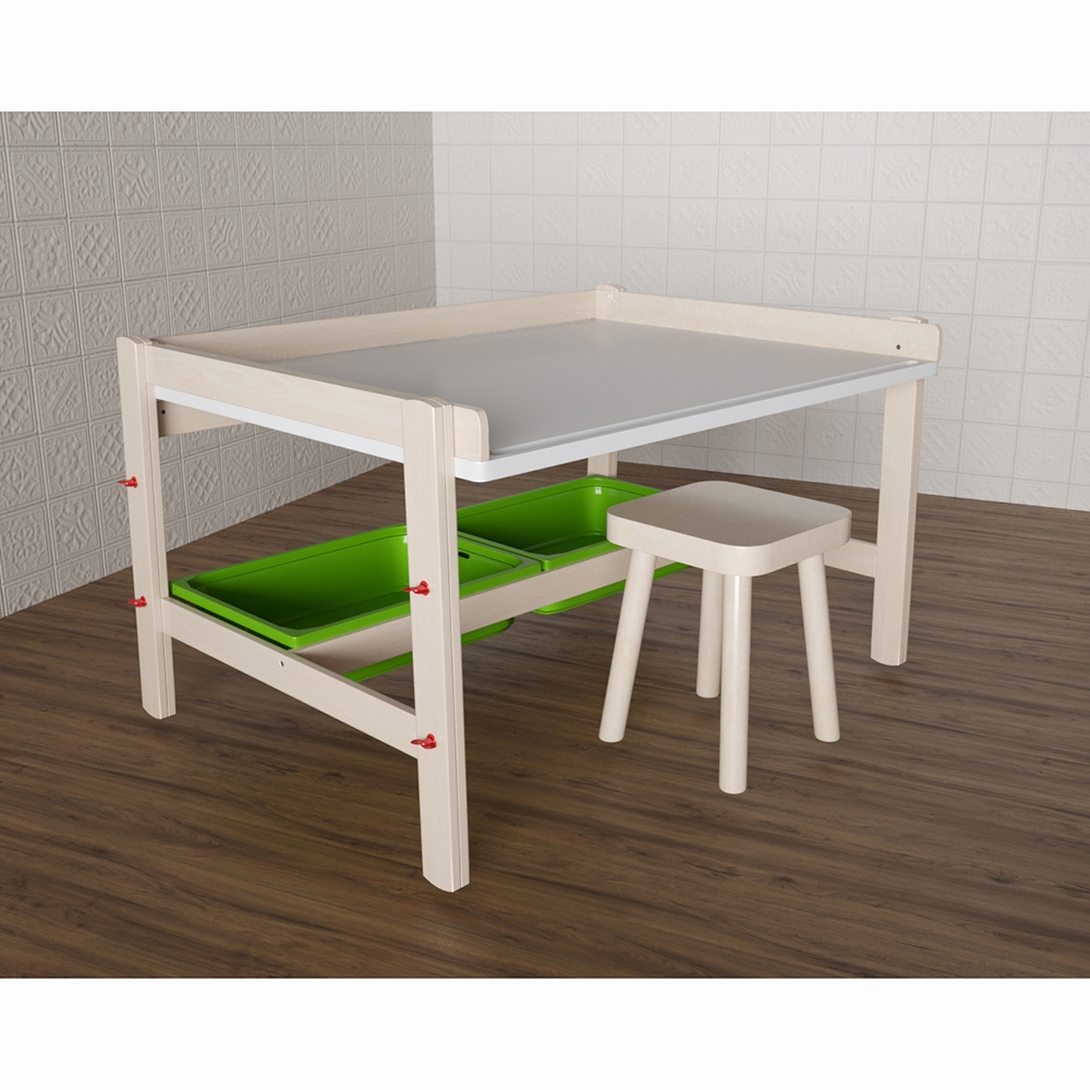 Детский стол «Иришка» предназначен для детей от 3-х лет. Этот стол станет отличным помощником в играх, учебе и творчестве маленьких непосед. Благодаря боковым бортикам столешницы игрушки, письменные принадлежности будут оставаться на столе, что поможет сократить время уборки. Дополнительно в столе есть два вместительных, пластиковых ящика для хранения игрушек, письменных принадлежностей ребенка. Также огромным преимуществом будет то, что столик может расти вместе с вашим ребенком, с помощью боковых регуляторов на ножках.