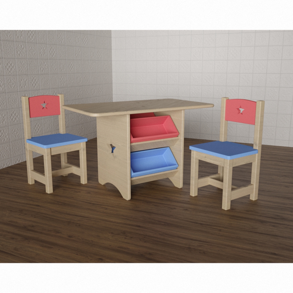 Детский стол «Звёздочка» станет красивым и полезным дополнением вашей детской комнаты. Он укомплектован четырьмя ящиками для хранения игрушек либо письменных принадлежностей ребенка. Помимо занятий и творчества этот стол поможет привить ребенку навыки уборки. Стол имеет два посадочных места. Он безопасен, так как все углы стола округлены во избежание травм о них ребенка. Стол выполнен в приятной цветовой гамме и изысканном дизайне с декоративными отверстиями на корпусе в виде звездочек. Предназначен стол для детей от 3-х лет.