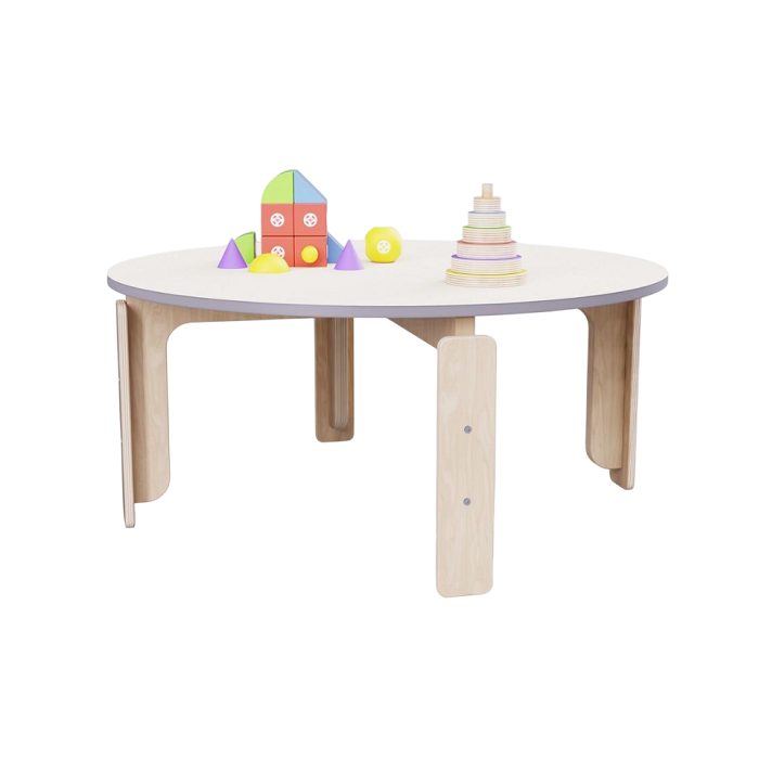 Круглый растущий стол из коллекции «НЕГА» с плавными линиями обеспечивает безопасное перемещение детей, как для приема пищи, так и для игровых зон.