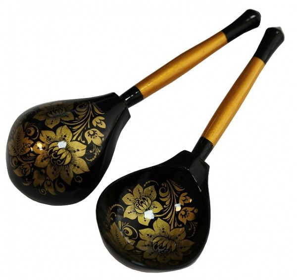 Данная модель расписана в хохломском стиле «кудрина». Её отличает стилизованное изображение листьев, цветов, завитков. Не занятое ими пространство закрашивают краской, и золотые ветви эффектно смотрятся на ярко-красном или чёрном фоне. Своё название «кудрина» получила от золотых кудреватых завитков, линии которых образуют причудливые узорные формы листьев, цветов и плодов. Роспись «кудрина» напоминает ковёр. Особенностью её является то, что главную роль играет не кистевой мазок, а контурная линия. Плоское пятно золота и тонкий штрих в проработке деталей. Фон в таком виде росписи также окрашивается в красный или чёрный цвет.