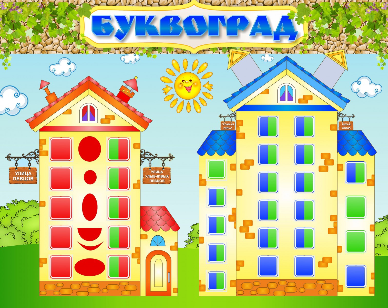 Стенд "Буквоград" послужит неоценимым помощником при обучении детей чтению, а также в коррекции речи дошкольников. Размещая буквы в окошках домиков в соответствии с решаемой задачей, педагог превращает обычное занятие в увлекательную игру.