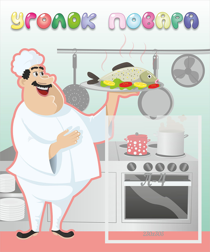 Кто, кроме главного повара знает все тонкости меню предстоящего дня?  Этот стенд должен продемонстрировать меню на день: перечисление приемов пищи и блюд, которые дети получат на завтрак, второй завтрак, обед, полдник и ужин (если такой предполагается в детском саду). Информация эта предназначается прежде всего для родителей, чтобы они могли подойти, ознакомиться с теми продуктами, которые получит ребенок в детском саду.