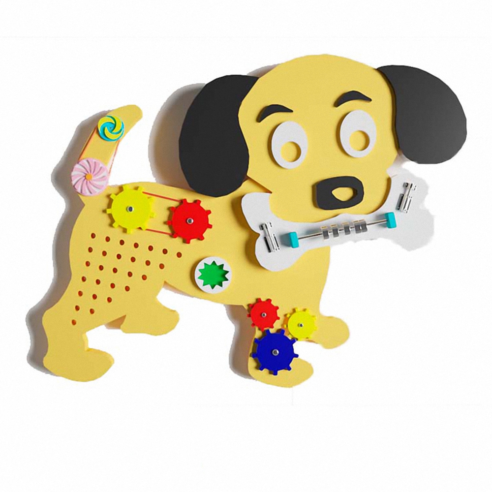 Бизиборд Верный пёс - его форма и изображение собачки познакомит ребенка с миром животных, интересен будет так же, как персонаж из любимых сказок. Производитель позаботился о безопасности игрушки: нет острых углов и не оставляет заусенцы.