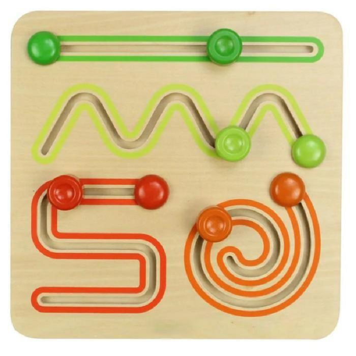 Панель для развития мелкой моторики, включающая 4 основных движения рук: прямолинейное движение, качающееся движение, круговое движение и поворот. Маленькие ручки будут держать деревянные детали и двигать их, следуя направлениям стрелок. Простая, но важная игрушка для самых маленьких на ранних стадиях развития.