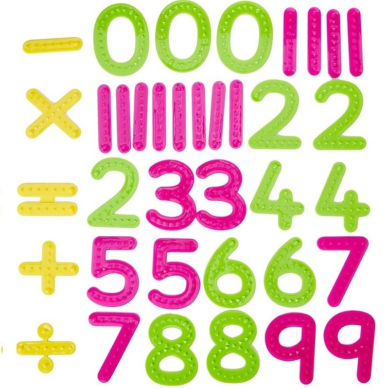 - В целях пробуждения интереса малыша к решению математических задач с самого раннего возраста набор включает также математические знаки