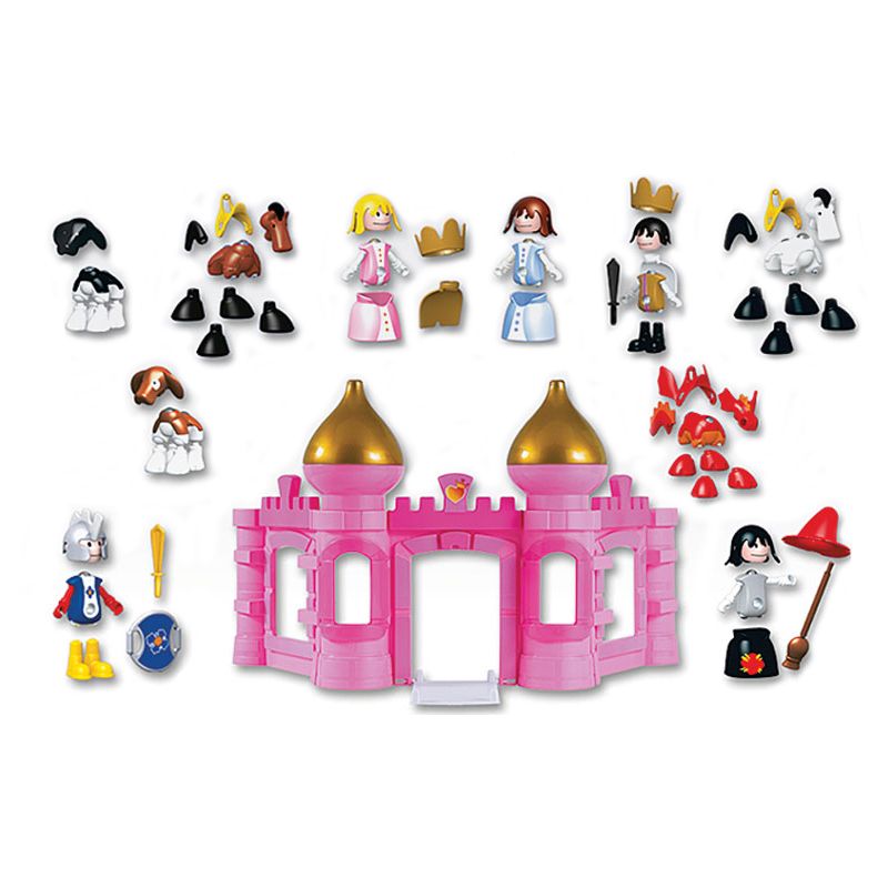 Набор «Дворец принцессы» включает 62 деталей, из которых можно построить одновременно 10 фигурок для сюжетной игры: принца, принцессу, служанку, ведьму, рыцаря, стражника, двух лошадей, двух собак и дракона. Кроме того, в набор входят дополнительные детали: замок для принцессы, седла для лошадей, короны, шляпа, а также метла, мечи, щиты, которые можно вставить в руки персонажей. Каждая фигурка состоит из нескольких частей: туловище, голова, ноги и разные аксессуары (шляпа, меч и др.).