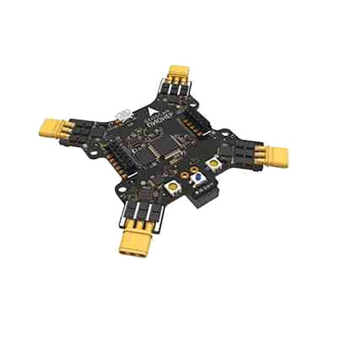 Автопилот, акселерометр, гироскоп, регуляторы скорости, радиомодем 868 МГц, установленные на одной плате, обеспечивает подключение моторов к плате на разъемах, поддержку всех указанных дополнительных модулей расширения.