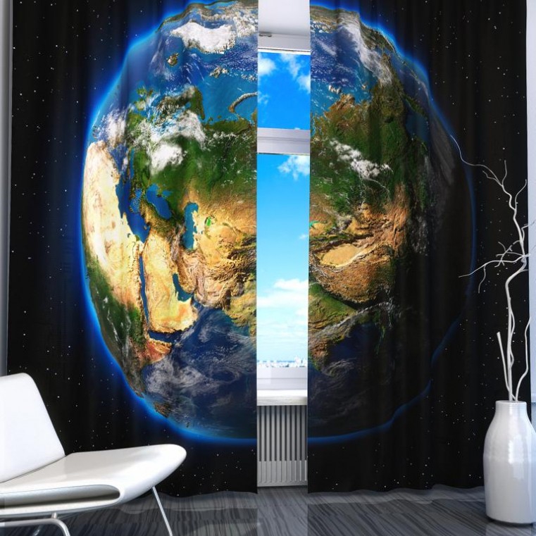 Комплект светонепроницаемых штор "Планета Земля" - «globural.ru» - Нижний Новгород